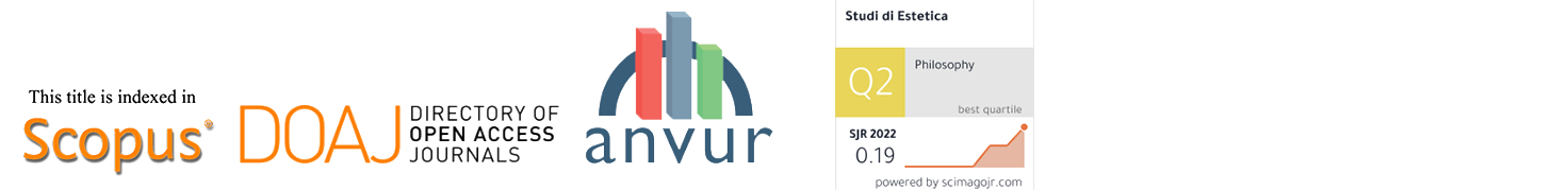 “Studi di estetica / aesthetic studies” is a Class A-Anvur Journal, also indexed in DOAJ, Scopus, ERIH PLUS, Google Scholar, PhilPapers, Catalogo italiano dei periodici. It is ranked in quartile Q2 by SCImago Journal Rank.